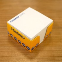 Стандартный размер кубариков составляет 90 х 90 х 90 мм. В таком кубарике 900 отрывных листов, которых вполне хватает как для ведения рабочих заметок, так и для того, чтобы в случае необходимости заменить визитку – размещённая на листах корпоративная символика позволяет использовать их и в таком качестве. Кубарики с логотипом – выбор очевиден.